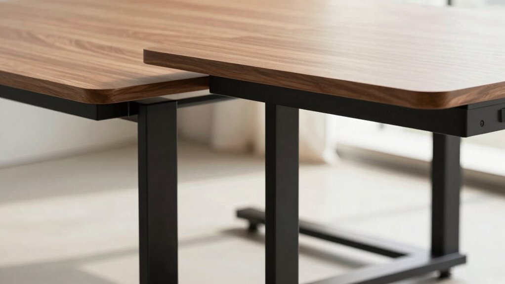Standing desk frames and tops serve different purposes but work together to create an ergonomic workspace. The frame provides the structure and support, allowing you to modify the height easily, which is essential for ergonomic benefits. An adjustable height feature ensures you can switch between sitting and standing positions comfortably, reducing strain and improving posture. The frame’s stability and smooth mechanism are key to maintaining proper alignment throughout the day. Additionally, choosing the right style and design can complement your workspace aesthetic. The adjustability of the frame is crucial for accommodating different user needs and promoting better movement. Proper technology integration can further enhance ease of use and flexibility. Incorporating ergonomic principles into your setup ensures long-term comfort and health. Staying informed about AI Ethicist Jobs and related roles can also inspire innovative ways to optimize workspaces and promote healthier work environments. Together, they form a customizable setup that promotes better movement and reduces discomfort during long work hours.