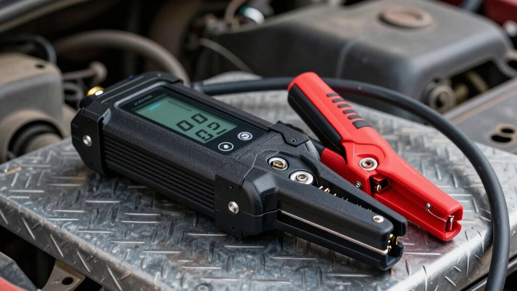 Beyond peak amps, several factors influence how well a jump starter performs and how safe it is to use. One key consideration is battery chemistry; lithium-ion batteries are lighter, more durable, and recharge faster than traditional lead-acid types, making them a reliable choice. Additionally, look at portability features—compact size, lightweight design, and built-in handles or cases enhance ease of use, especially if you need to carry it around often. Safety features like surge protection, spark-proof clamps, and overcharge prevention are also essential. These aspects ensure your jump starter not only provides reliable power but also minimizes risks during operation. Paying attention to battery chemistry helps you select a device that’s safe, efficient, and convenient for your trucking needs. Furthermore, understanding charge capacity can help you better match a jump starter to the demands of your vehicle’s battery. Recognizing performance indicators beyond peak amps can also give you a clearer picture of a jump starter’s overall effectiveness and longevity. For example, evaluating cycle life can indicate how many times a device can be used before its performance diminishes. Additionally, considering maintenance requirements can ensure you keep your jump starter in optimal condition for long-term use.