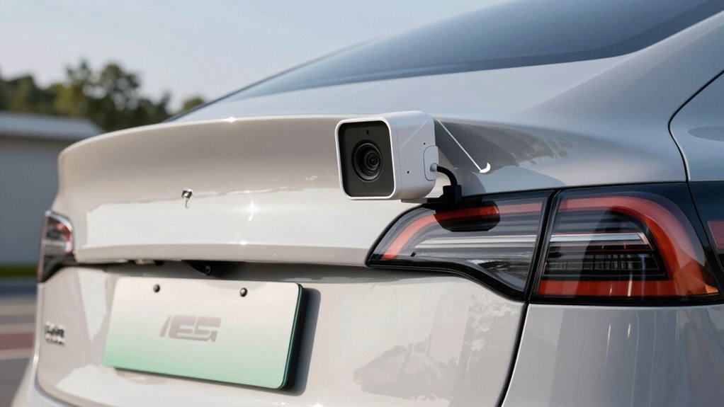 Wireless backup cameras typically have a range of 50 to 100 feet, but obstacles like walls, metal objects, and interference can weaken signals. Common sources of interference include Wi-Fi, cell phones, and microwaves, which can cause signal dropouts. To guarantee a clean install, position the camera in a clear, elevated spot away from interference, and use quality mounts and cables. If you want to learn how to maximize performance and troubleshoot issues, keep exploring.