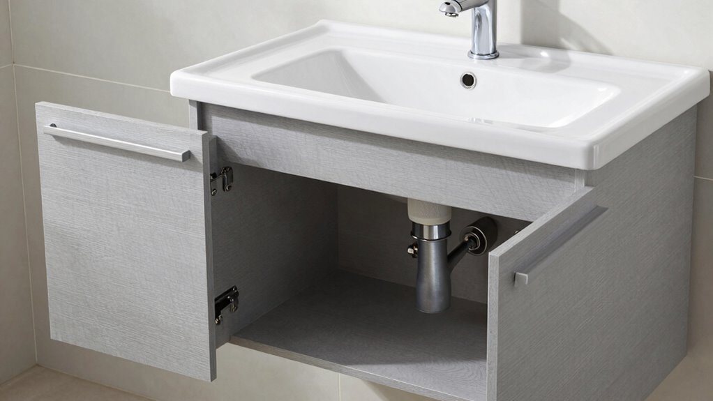 You should choose cabinet materials like solid wood, plywood, or high-quality particleboard with a moisture-resistant finish for durability. These materials withstand daily water exposure, resist warping, and handle heavy use. Durability factors include water resistance, sturdy construction, and quality hardware. By selecting the right cabinet material, you guarantee your utility sink cabinet remains functional and looks good over time, even with frequent use and exposure to moisture.