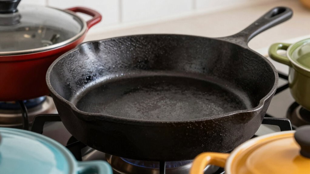 A cast iron skillet is like a chameleon, adapting to many cooking needs. It can often replace your non-stick alternatives because of its excellent heat retention and durability. While some delicate foods might stick initially, proper seasoning makes it nearly non-stick. With cast iron versatility, you’ll find it handles everything from searing steaks to baking cornbread, making it a smarter, long-term investment than multiple non-stick pans.