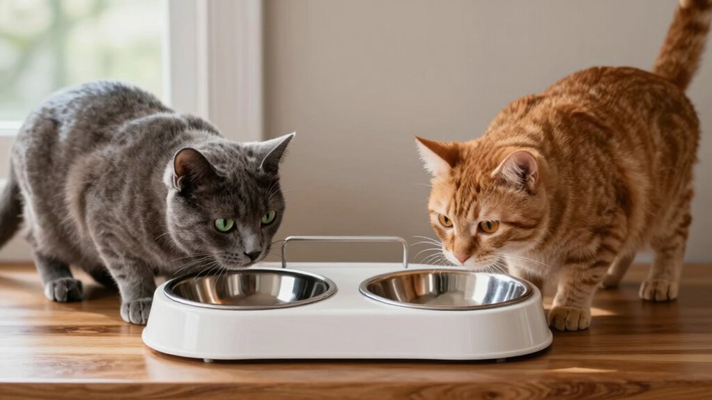 Creating a calm, stress-free feeding routine starts with consistency. When your feeding routines are predictable, your cats develop better behavior and less anxiety during mealtime. To achieve this, consider these final tips: