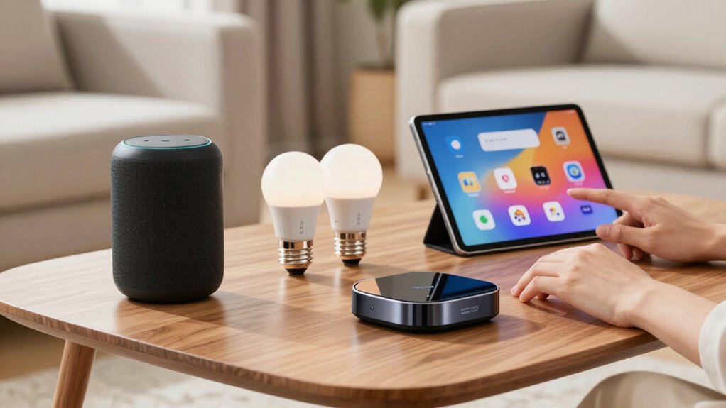 Starting with a smart speaker or voice assistant makes your home more convenient and connected. These devices improve your experience by providing quick access to music, information, and controls, all hands-free. With them, tasks become simpler, freeing up your time for what matters most. Incorporating a home automation system can further enhance your setup by enabling seamless integration with other smart devices. Additionally, choosing devices that support sleep-friendly features can help you create a more restful environment. Implementing personalized routines can optimize daily activities and enhance overall comfort in your smart home.