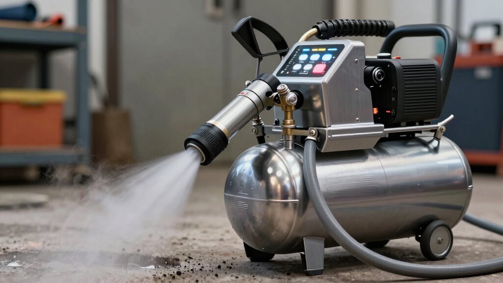 When selecting an air compressor for dust cleaning, nozzle versatility plays a significant role in achieving effective and precise results. Having multiple nozzles allows me to customize airflow angles and target hard-to-reach spots with ease. Different nozzles serve various functions, such as blowing debris, inflating objects, or dusting delicate surfaces, which boosts the compressor’s overall utility. Interchangeable nozzles with varied sizes and shapes improve the precision needed for cleaning electronics, vents, or intricate surfaces without risking damage. Specialized nozzles help me control airflow direction and pressure, especially when working with sensitive components. A good range of nozzle options makes the compressor adaptable for both light and heavy-duty tasks, ensuring I can handle a variety of cleaning jobs efficiently.