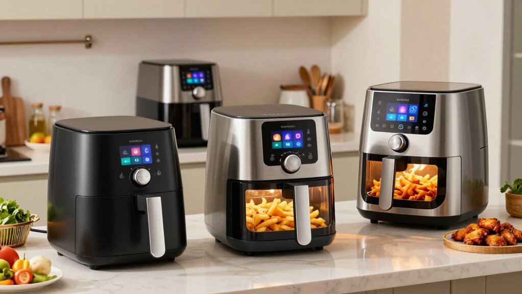 Imagine a family saving $50 a year on electricity with a large-capacity air fryer. Over time, these appliances are quite energy-efficient, especially if you use them regularly instead of the oven. They typically consume less power because they heat up faster and cook quicker, reducing overall energy use. So, I’ve found that with consistent use, large air fryers can be a cost-effective, eco-friendly addition to busy family kitchens.