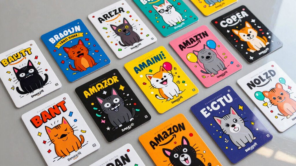 Choosing a funny Amazon e-gift card design with strong visual clarity is essential to guarantee the recipient immediately gets the joke or theme. Clear and bold graphics make the design recognizable and eye-catching at a glance. High contrast between the text and background enhances readability, ensuring the message stands out even in quick glimpses. Simple, uncluttered layouts prevent confusion, letting the humor or theme shine through without distraction. Vibrant colors draw attention and emphasize the playful or funny nature of the design. Well-defined images and fonts contribute to overall clarity, making sure the design remains effective across different screens and lighting conditions. Prioritizing visual clarity helps your gift stand out, making the humor instantly understood and appreciated.