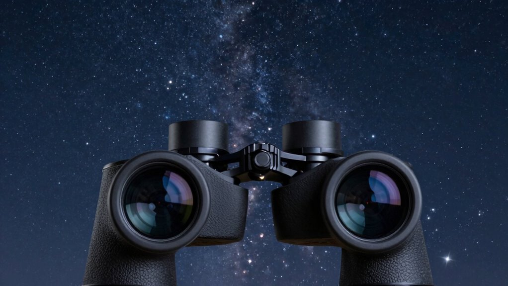 Waterproof features turn your stargazing binoculars into a resilient vessel, ready to brave any night sky adventure. They protect against unexpected rain, dew, or humidity, ensuring your view stays clear and sharp no matter the weather. I love how these binoculars become reliable companions, allowing me to explore the cosmos without worry. With waterproofing, your stargazing experience remains uninterrupted, turning every night into a magical voyage through the universe.
