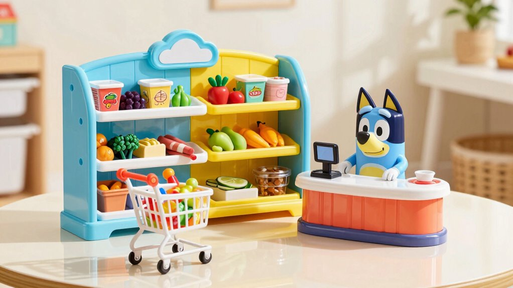 Did you know that most Bluey supermarket playsets are tested to withstand over 50 pounds of pressure? I find they’re quite durable, especially if you handle them with care. In my experience, high-quality sets last years without cracks or breakage, making them great investments. The plastic is sturdy yet lightweight, and many come with reinforced joints, so your little one can enjoy endless play without worry.