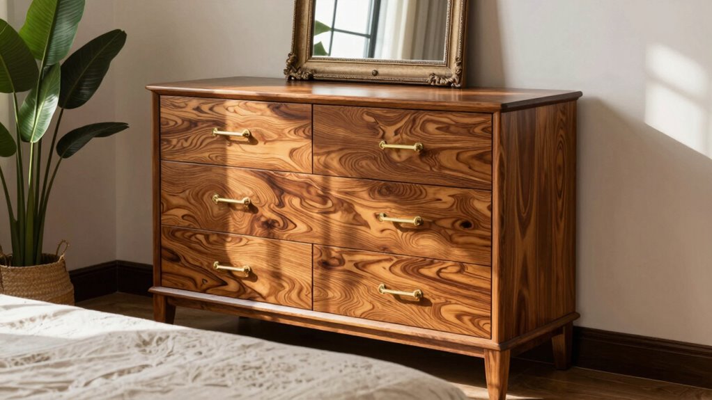 Did you know that proper maintenance can extend a wood dresser’s life by up to 50%? I recommend regularly dusting with a soft cloth and using a high-quality furniture polish to preserve the finish. Avoid harsh chemicals and excessive water, which can damage the wood. Occasionally, I apply a wood conditioner to keep the surface nourished. Consistent care helps maintain the beauty and durability of your dresser for years to come.