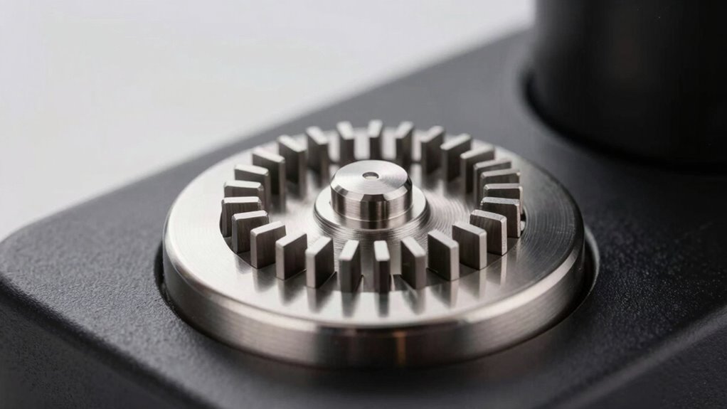 Think of burr technology as the heartbeat of your grinder, constantly evolving. In 2026, innovations like ceramic-coated burrs and ultra-precise, laser-cut designs are revolutionizing consistency and durability. These advancements act like a conductor, ensuring every shot sings with clarity and balance. I see these innovations making a real difference, giving us baristas and coffee lovers alike a more reliable, flavorful espresso experience every time we grind.