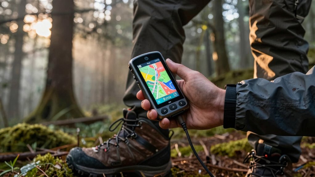 Imagine a device as resilient as the sun itself—yes, some handheld GPS units now support solar charging. I’ve seen models like Garmin’s inReach Mini and some units from Garmin and Suunto that incorporate solar panels, extending their battery life dramatically. These gadgets turn sunlight into power, making them perfect for long hikes where traditional charging might be scarce. So, if you love adventure, these solar-compatible GPS devices are worth considering.