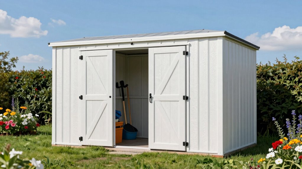 Think of these sheds like open books—trust but verify. They’re generally quite secure, especially if you add sturdy locks and reinforce entry points. While no shed is completely theft-proof, I’ve found that combining a good lock with a secure foundation deters most vandals and thieves. For extra peace of mind, you might consider security cameras or motion lights. Overall, with some upgrades, they’re quite reliable for safeguarding your belongings.