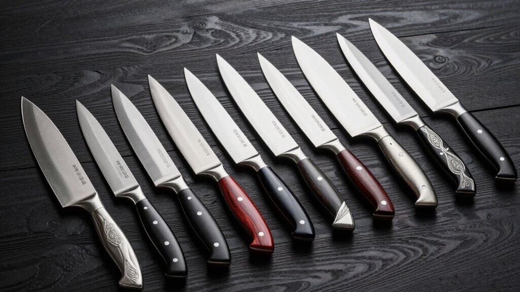 Choosing a premium chef knife set begins with examining the quality of its blade material, as this directly affects performance and longevity. High-quality steels like Japanese high carbon stainless or German stainless steel provide superior edge retention and durability. The steel’s hardness, measured in HRC or Rockwell scale, determines how well the blade maintains its sharpness over time. Professional-grade blades are usually forged or laser-cut, which boosts structural integrity and ensures precise cuts. Rust, stain, and corrosion resistance are essential for keeping the blades in top shape and easing maintenance. Additionally, layered or Damascus patterns not only enhance toughness but also add a striking aesthetic. Prioritizing these aspects helps you select a set built to last and perform at a professional level.