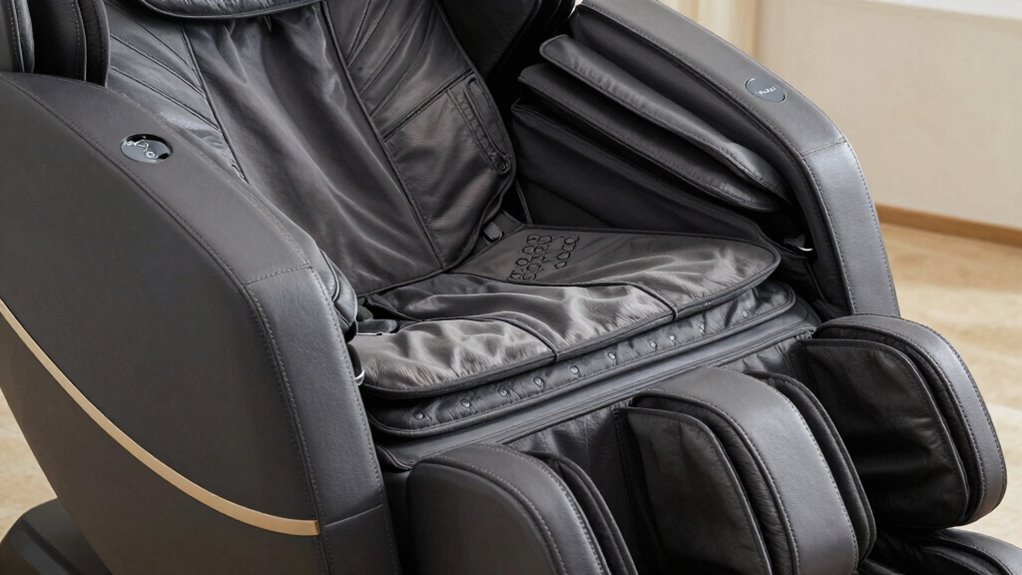 With so many massage techniques available in professional massage chair pads, selecting the right one depends on your specific needs and preferences. Different pads offer options like Shiatsu, kneading, rolling, vibration, compression, and heat, each targeting different muscle groups. The variety allows you to customize your relaxation, whether you want deep kneading for muscle knots or gentle vibrations for soothing relief. Some pads even combine multiple techniques, providing a thorough full-body massage in one session. The effectiveness of each method varies based on your needs, so you can switch modes for gentle or intense sensations. This flexibility ensures you get a tailored experience, whether you’re seeking deep muscle relief or just relaxing comfort after a long day.