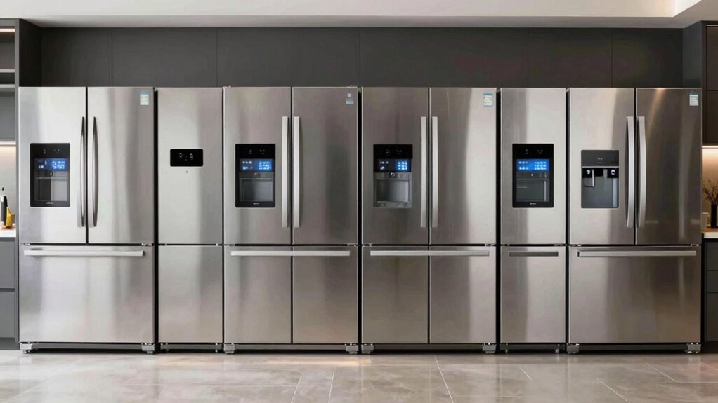 Choosing a refrigerator with flexible storage options can make a big difference in how efficiently you use your space. Adjustable glass shelves and door bins let you customize the interior to fit taller or irregularly shaped items, reducing wasted space. Fully enclosed crisper drawers with humidity control keep produce fresh while helping you stay organized. Many models include slide-out shelves, removable drawers, and convertible zones, offering versatile food placement. Multiple door bins and adjustable shelves maximize space for beverages, condiments, and larger items. Some refrigerators even feature separate compartments or drawers with dedicated temperature settings for specific foods. These adaptable options ensure you can adapt your storage to your needs, making your fridge more functional and keeping everything easily accessible.
