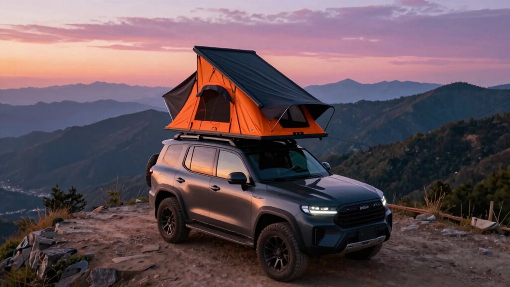 Think of your SUV’s roof rack as a versatile stage for your outdoor adventures. Most rooftop tents are designed to be compatible with standard roof rack systems, but it’s not a one-size-fits-all situation. I recommend checking the tent’s specifications and your SUV’s rack type to guarantee a perfect fit. With a little research, you’ll find a setup that elevates your camping game without any compatibility issues.