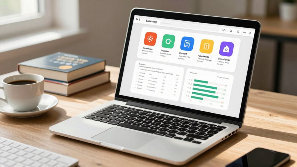 To get the most out of your Rosetta Stone lifetime subscription, it’s essential to guarantee it supports all your preferred devices. Make sure the plan works with your chosen platforms, whether that’s Windows, Mac, iOS, Android, or web browsers. It’s important that both desktop and mobile options are covered, giving you flexible learning anytime, anywhere. Check if the software requires specific OS versions or hardware specs to run smoothly on your devices. Also, verify whether the subscription grants access to apps or features that work seamlessly across all devices you own. Finally, consider if offline access or downloadable content is available, especially for devices that may not always be connected to the internet. Ensuring broad compatibility helps you maximize your learning experience without technical limitations.