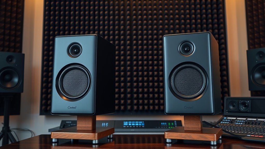 Achieving sound accuracy and clarity in studio monitor speakers requires selecting models that deliver a flat frequency response, ensuring audio signals are reproduced without coloration or distortion. This allows me to trust that what I hear is an accurate representation of the original sound, making mixing and editing more precise. Clear sound with minimal harmonic distortion helps me perceive subtle details in vocals, instruments, and effects, leading to better mixes. High-resolution drivers and tweeters are essential for accurate high-frequency response and balanced midrange reproduction. Precise stereo imaging and wide sweet spots give me reliable monitoring from various angles, while proper acoustic tuning controls adapt the sound to different room environments. All these factors contribute to a transparent, true-to-source listening experience.
