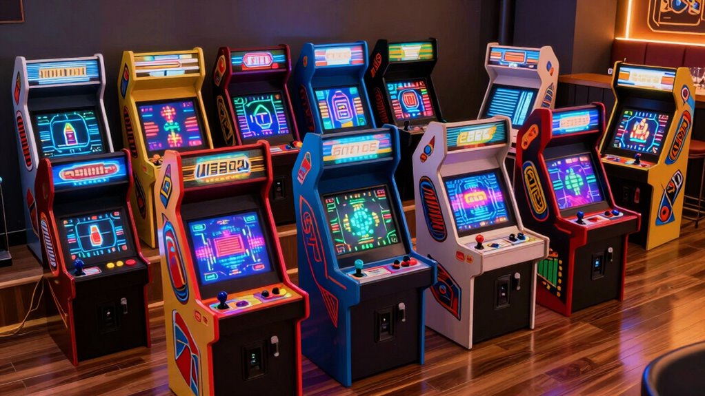 Imagine the gentle hum of a tabletop arcade in my living room, flickering with energy-efficient LED lights. These machines are surprisingly eco-friendly, designed to consume minimal power while delivering maximum fun. They often feature smart power management settings, so I can enjoy hours of gaming without worrying about high electricity bills. I love how they combine retro charm with modern efficiency, making my gaming experience both exciting and responsible.