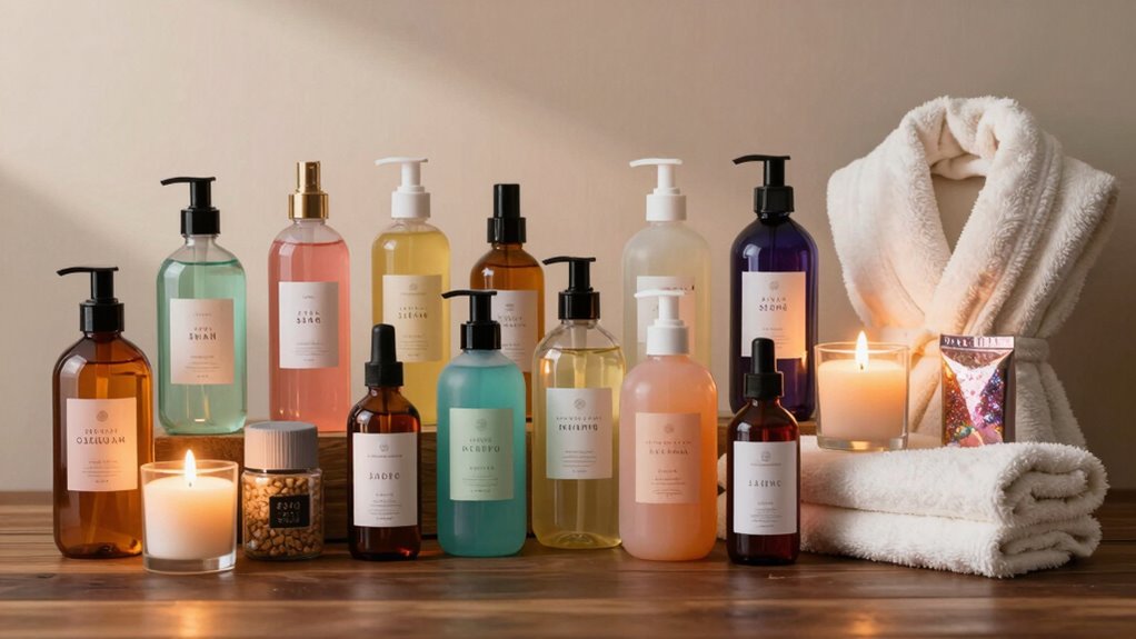 Focusing on natural ingredients is a smart way to select value spa sets under $40 that deliver real skin benefits. Natural components like plant extracts, essential oils, and botanical infusions are gentle and less likely to irritate sensitive skin. Ingredients such as shea butter, coconut oil, and vitamin E deeply hydrate, nourish, and strengthen the skin barrier, while providing antioxidant protection. Organic and natural elements typically contain fewer synthetic chemicals, reducing allergy risks and supporting overall skin health. The therapeutic properties of ingredients like lavender and chamomile help promote relaxation, reduce stress, and improve sleep quality. Plus, products with natural ingredients usually avoid parabens, sulfates, and artificial fragrances, making them safer and more eco-friendly choices for your self-care routine.